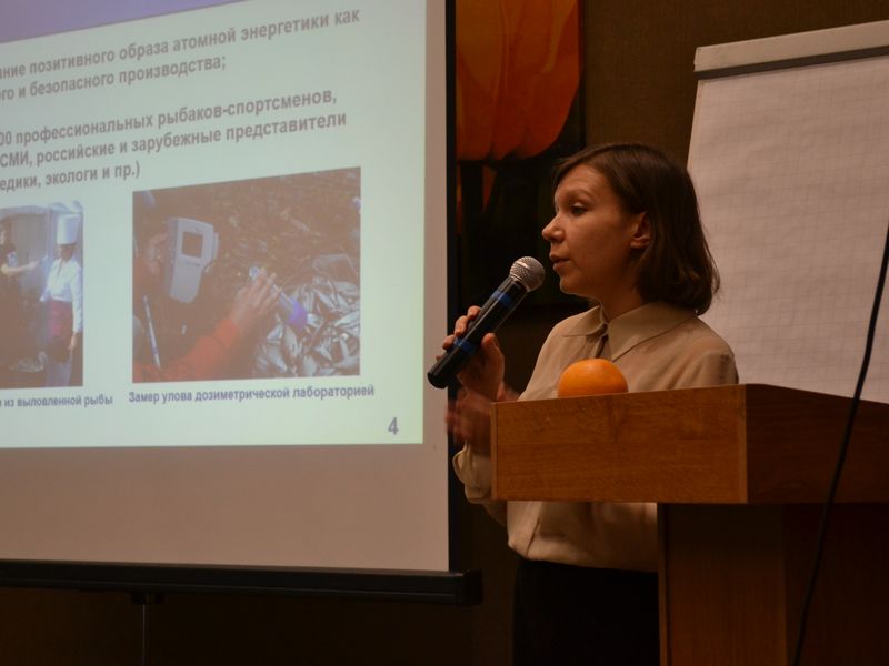 Тему информационных центров продолжила представитель ИЦАЭ в Москве Татьяна Яничкина. Она подробно остановилась на проектах в области популяризации атомной энергетики, таких как Чемпионат России по рыбной ловле на пруду-охладителе АЭС, молодёжный инновационный форум «Форсаж», сетевые игры и круглые столы по общественной приемлемости атомной энергетики. В своём докладе она отметила необходимость проведения подобных мероприятий в городах присутствия атомной промышленности и их положительное влияние на общественное мнение. В конце выступления Татьяна Яничкина пригласила всех к сотрудничеству и ответила на интересующие вопросы аудитории.