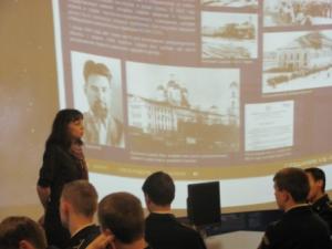 Далее состоялся рассказ директора музея речного флота Водной академии Галины Павловны Абамовой, которая выступила с презентацией о вкладе и роли героев речного флота в годы Великой Отечественной войны. Речники Волги вместе со всеми советскими людьми вносили в фонд обороны свои сбережения – рассказывает Галина Павловна.