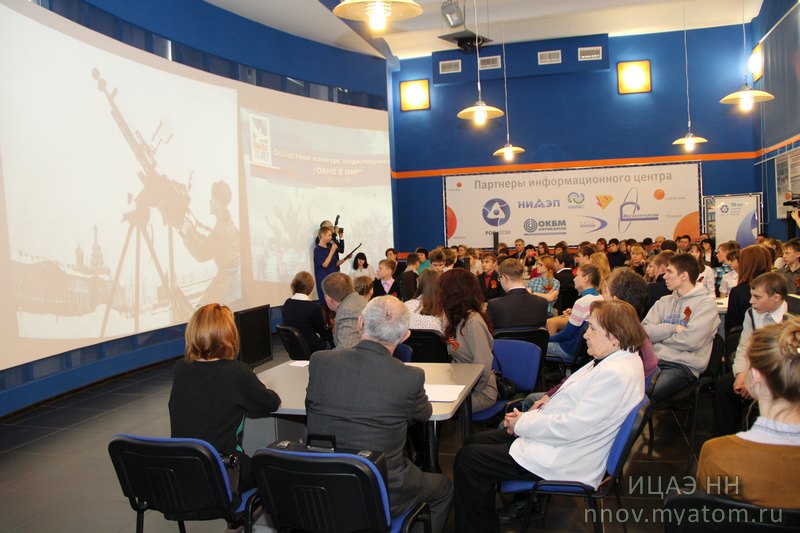22 апреля, традиционно, в Информационном центре по атомной энергии Нижнего Новгорода состоялось торжественное подведение итогов областного конкурса медиатворчества «Окно в мир», посвященного 70-летию Победы в Великой Отечественной войне над фашизмом. Организатором Конкурса с 2007 года является Центр развития творчества детей и юношества Нижегородской области.